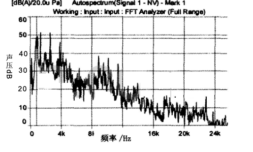 将麦克风至离365scores_365平台地址体育_苹果约彩365app下载 外壳15cm的地方测试365scores_365平台地址体育_苹果约彩365app下载 的噪音,并进行频谱分析,所得结果如下